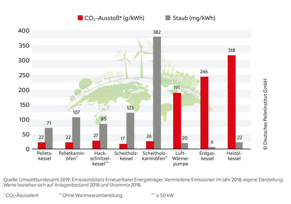 nur einen Bruchteil der Emissionen eines alten Brennstoffkessels.