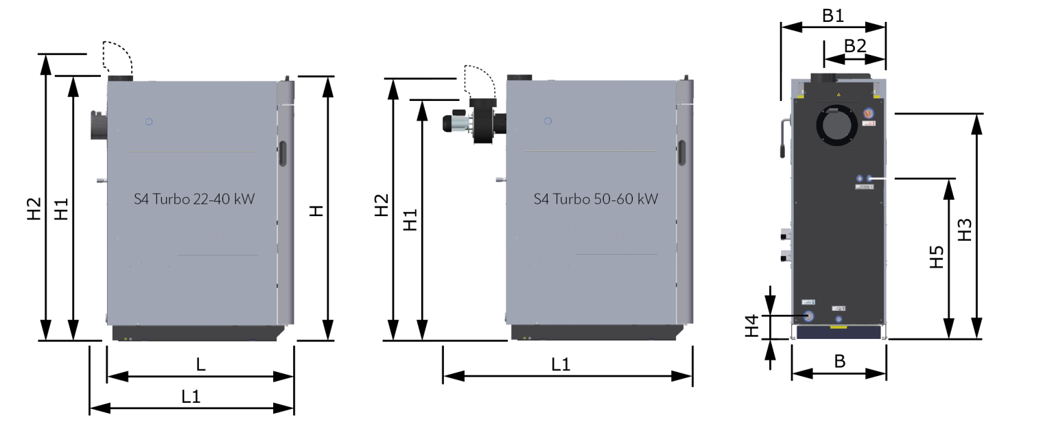 | B2 Abstand Rauchrohranschluss zu Kesselseite | 380 | 380 | 430 | 430 | 470 | 470 |