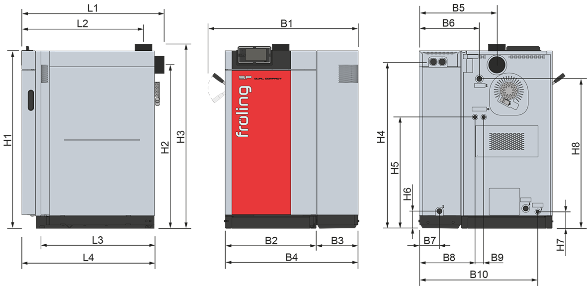 | B8 Abstand Anschluss Sicherheitswärmetauscher zu Kesselseite | 420 | 420 |