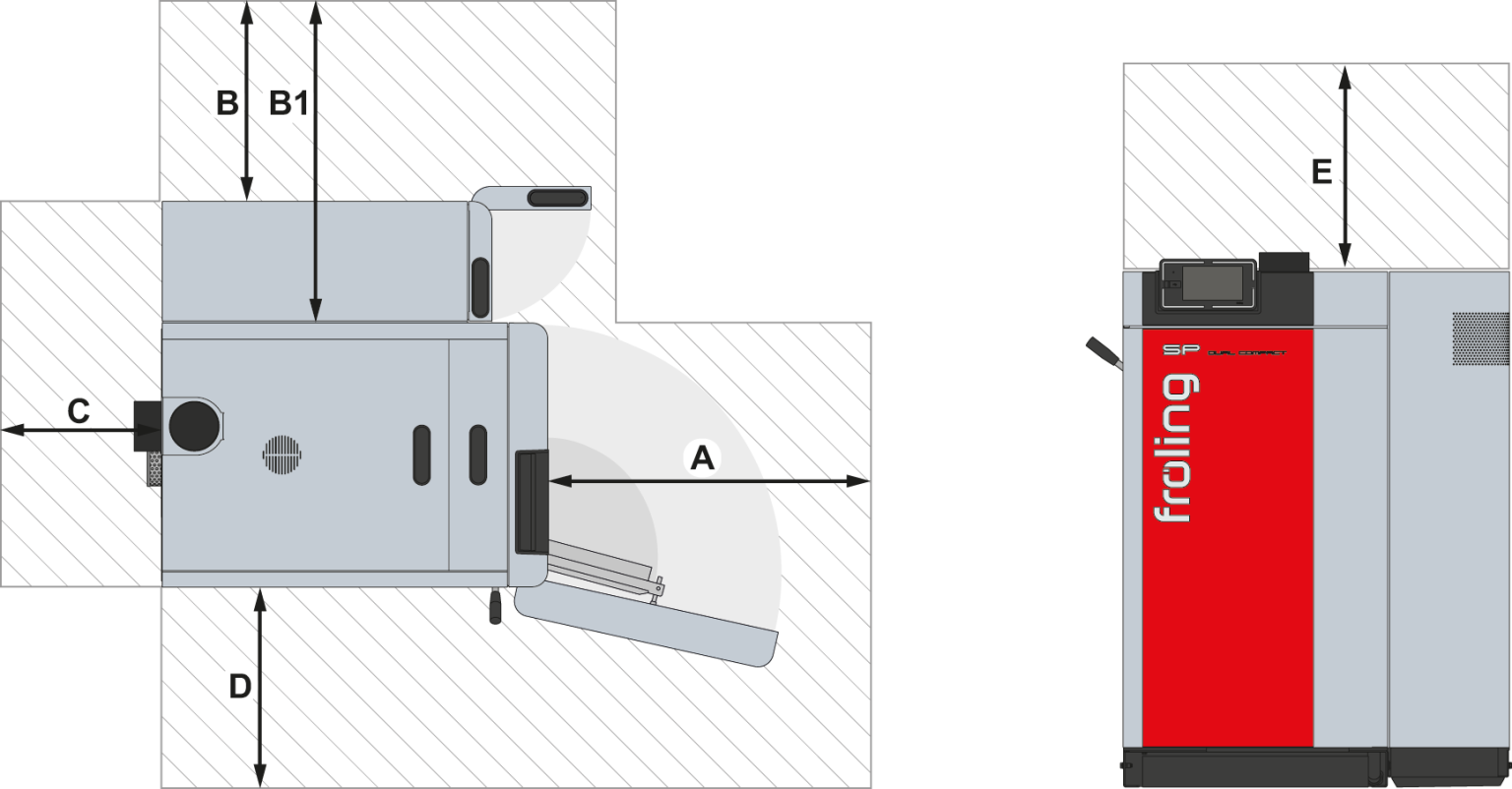 | B1 Abstand – Kesselseite ohne Pelletseinheit zur Wand | 815 |