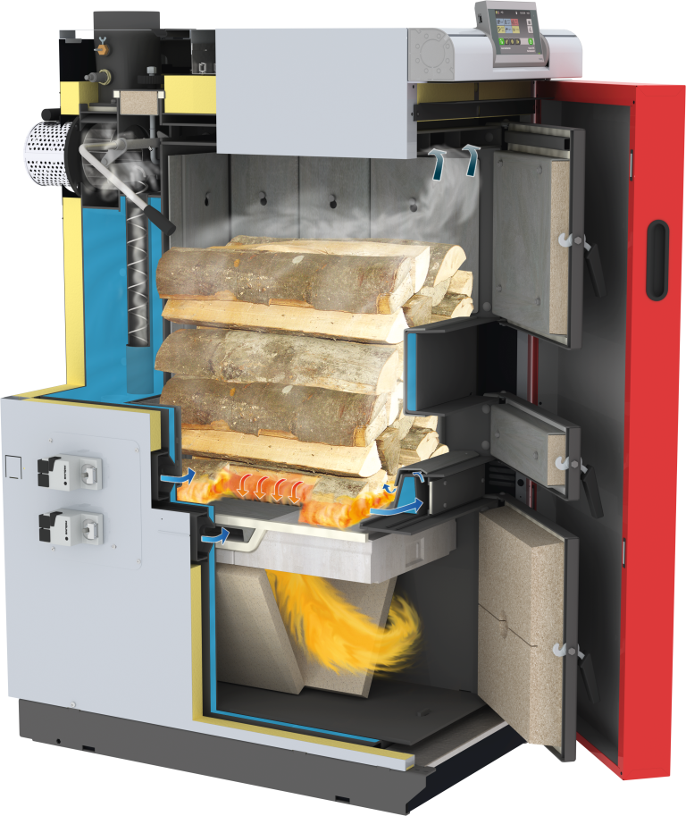Einhängeschürzen zum Schutz der Kesselinnenwand und garantiertem Nachrutschen der Holzscheite