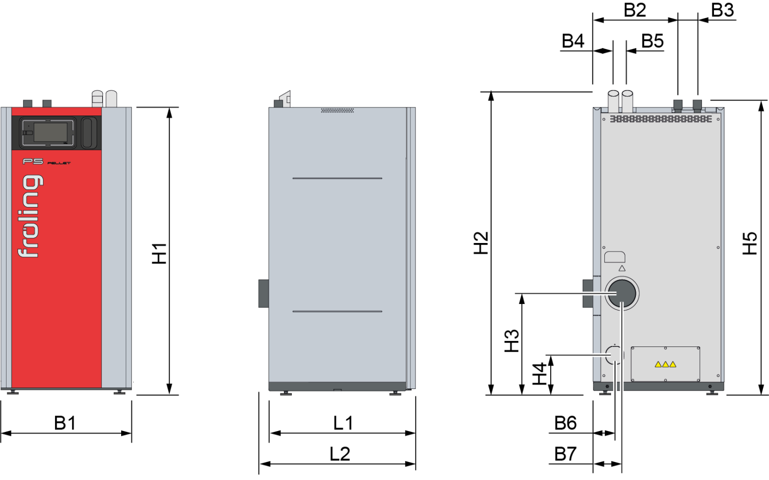 | L1 Length, boiler | 685 | 750 | Details for P5 45 - 105 kW please take a look in our brochures |