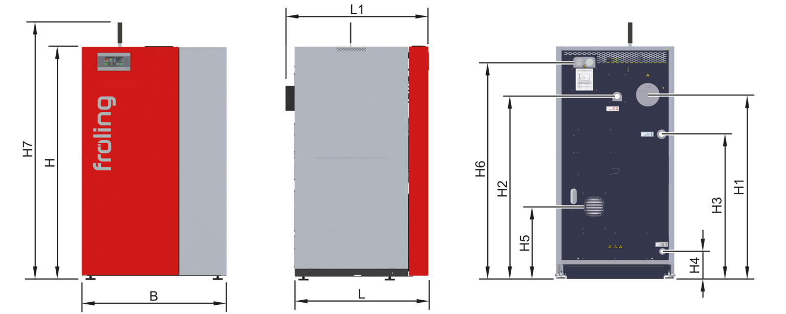 | L1 | Total length including flue pipe connection | 740 | 740 | 890 | 890 | 890 |