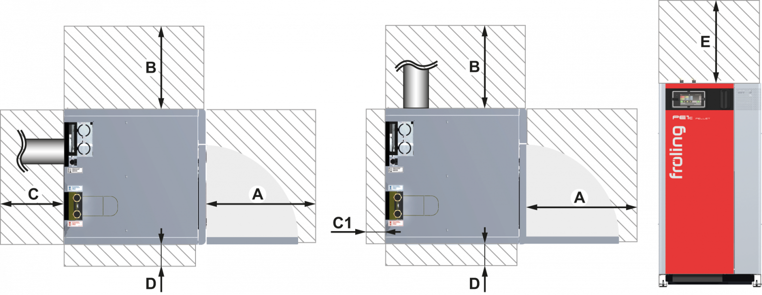 C1 Clearance between the rear of boiler and the wall (flue gas pipe right)²100