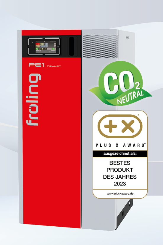 Der Fröling Pelletkessel PE1 Pellet überzeugte erneut beim Plus X Award® und wurde als „Bestes Produkt des Jahres“ ausgezeichnet.