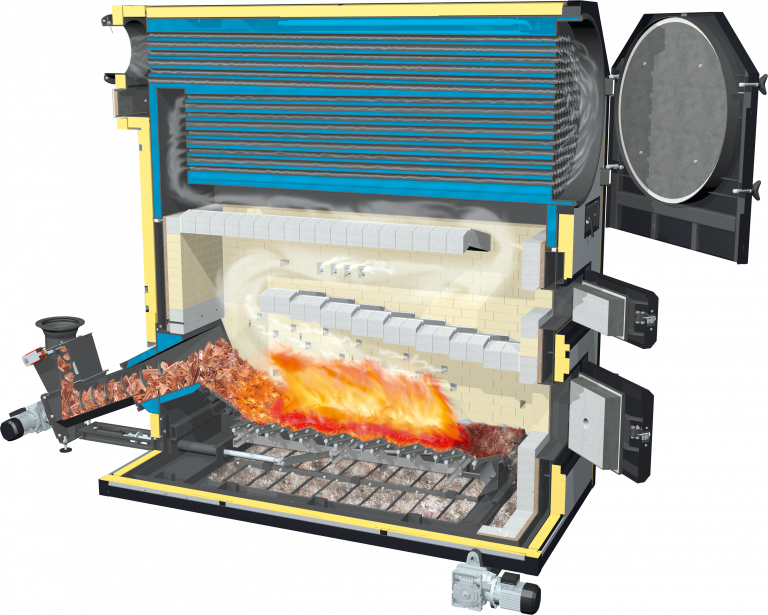 La bóveda de doble túnel garantiza una combustión completa y óptima de los combustibles que contienen mucha agua.
