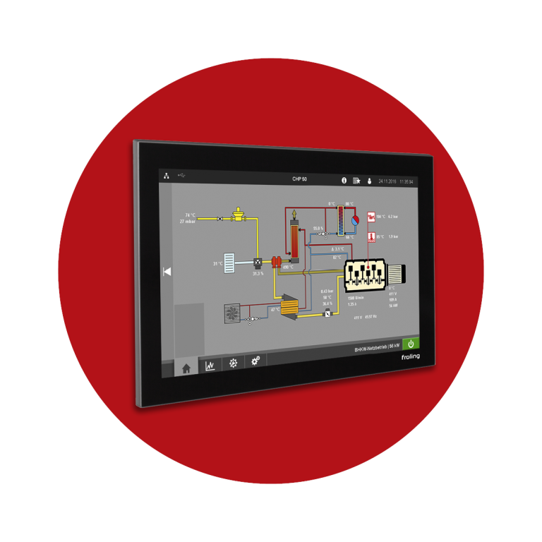 Con el control de la caldera, Froling avanza hacia el futuro. El sistema de control inteligente está compuesto por componentes de alta calidad conformes con los estándares industriales y ofrece numerosas posibilidades de ajuste y visualización. El resultado es un funcionamiento individual, eficiente y estable de la instalación. La unidad de mando ofrece numerosas funciones, tales como gestión del depósito de inercia de 5 sensores, regulación de la temperatura del circuito de calefacción y de la red, especificación externa de la potencia y funcionamiento en cascada, así como integración, vigilancia y control de los componentes adicionales del entorno.