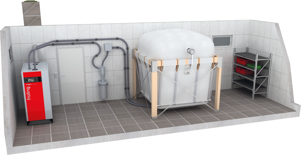 I Pellets - Variosilos di Fröling, di varie dimensioni, offrono un'opzione flessibile e soprattutto semplice per lo stoccaggio dei pellet.