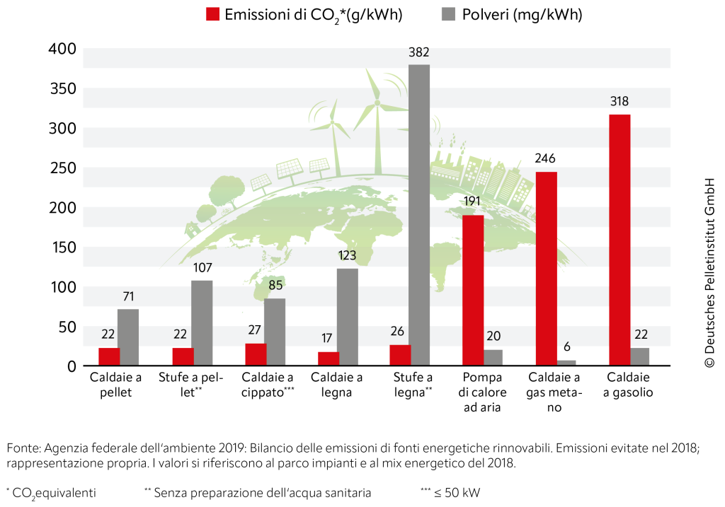 Emissioni di polveri e CO2 di impianti di riscaldamento