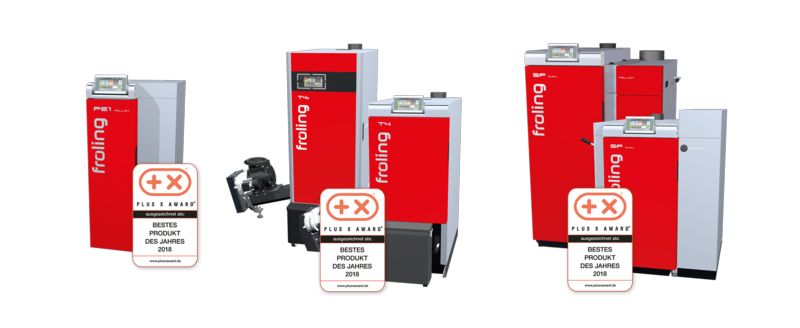 Pelletkessel PE1 Pellet, Hackschnitzelkessel T4 / T4e und der Kombikessel SP Dual / SP Dual compact überzeugten beim Plus X Award® und wurden von der Jury zum  „Besten Produkt des Jahres 2018“gewählt!