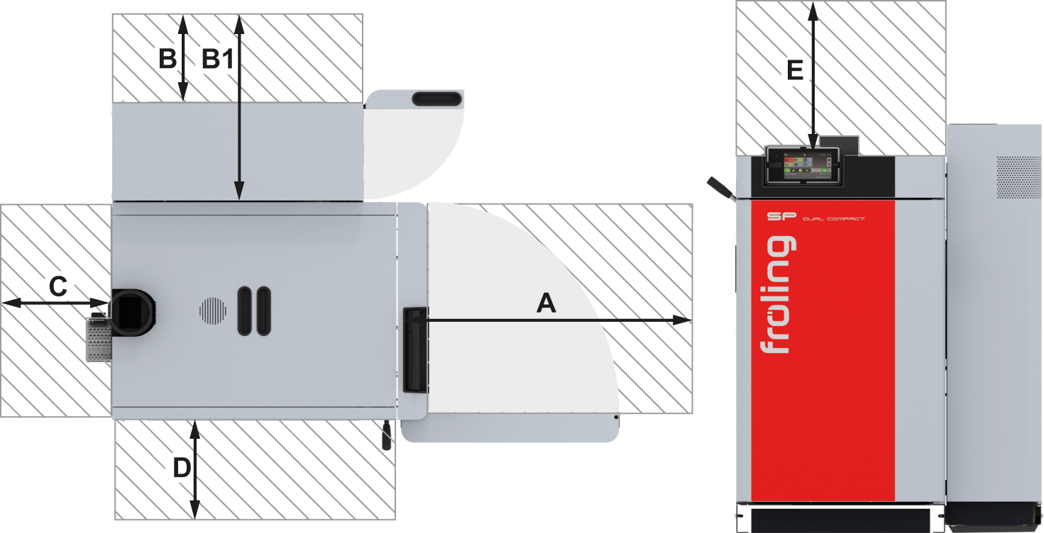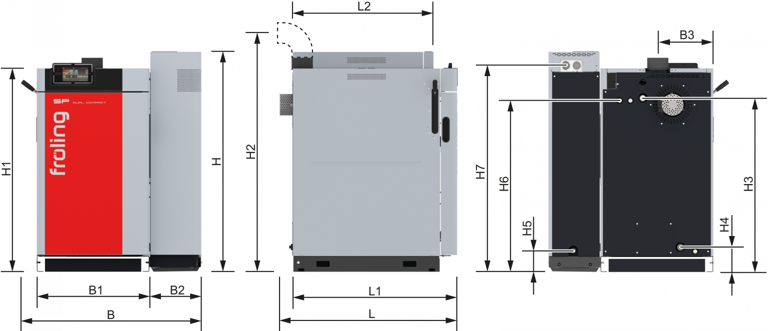 Jeśli obecnie chcesz palić wyłącznie drewnem opałowym, Froling oferuje elastyczne rozwiązanie na przyszłość: W przypadku modelu S1 Turbo F z kołnierzem do pelletu jednostkę pelletową można w dowolnym momencie doposażyć później. SP Dual compact wykazuje istotne zalety jeszcze przed umieszczeniem w kotłowni. Jest tak kompaktowy, że jego montaż jest dziecinnie prosty nawet w ciasnych kotłowniach. Palnik na pellet w kotle SP Dual compact jest dostarczany w stanie całkowicie zaizolowanym i okablowanym, więc wystarczy go tylko podłączyć do zasilania. Dzięki konstrukcji zawierającej tylko jedną rurę wydechową w każdej chwili można wyjątkowo łatwo doposażyć go w palnik na pellet.