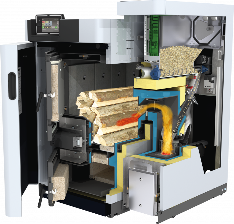 Kompaktowy kocioł na drewno opałowe i pellet SP Dual łączy w sobie dwa doskonałe systemy – spełnia wszystkie wymagania dotyczące paliw typu drewno opałowe i pellet w dwóch oddzielnych komorach spalania. Wyjątkowo wydajny i wygodny kocioł SP Dual compact zapewnia niskie emisje i koszty energii. Ponadto kocioł SP Dual compact posiada tylko jeden wymiennik ciepła, regulator temperatury powrotu, sterownik i rurę spalinową, które mogą być wykorzystywane w obu trybach pracy.
