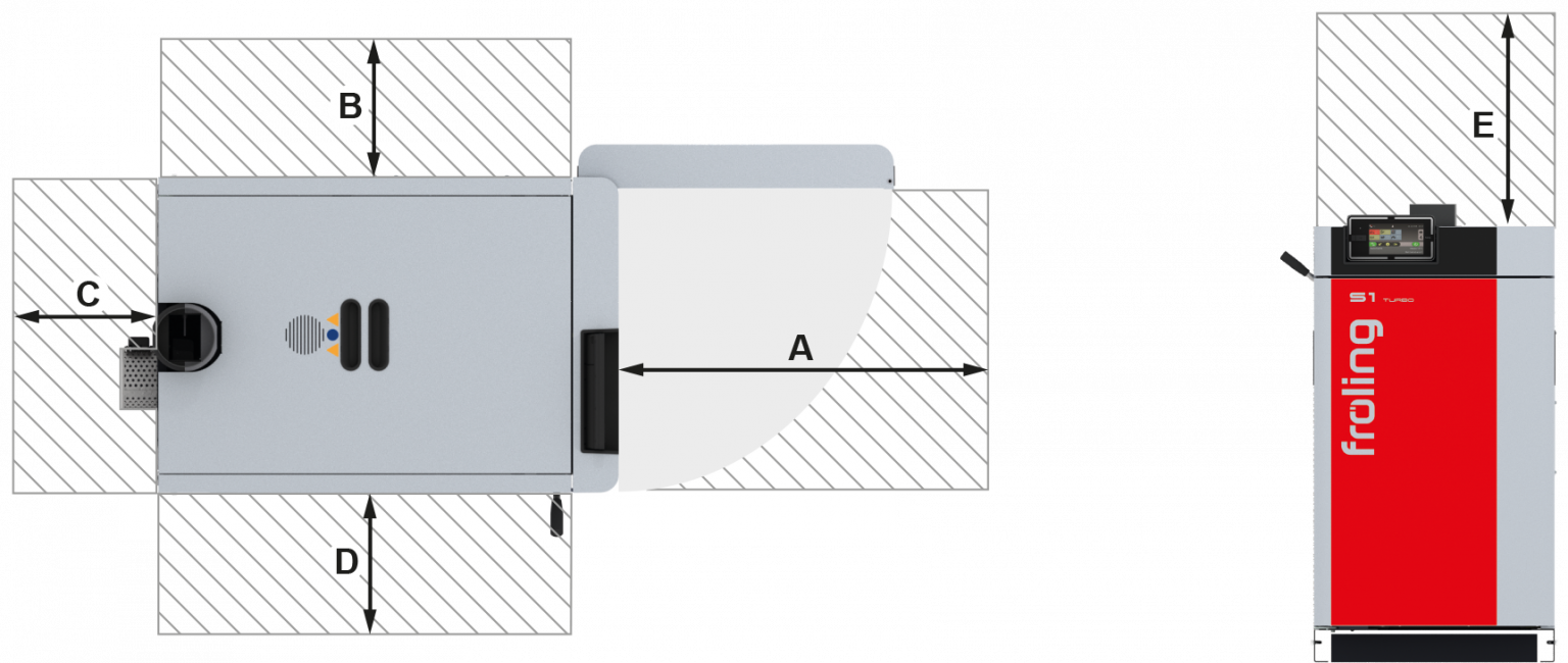 A Distance between front of boiler and wall800